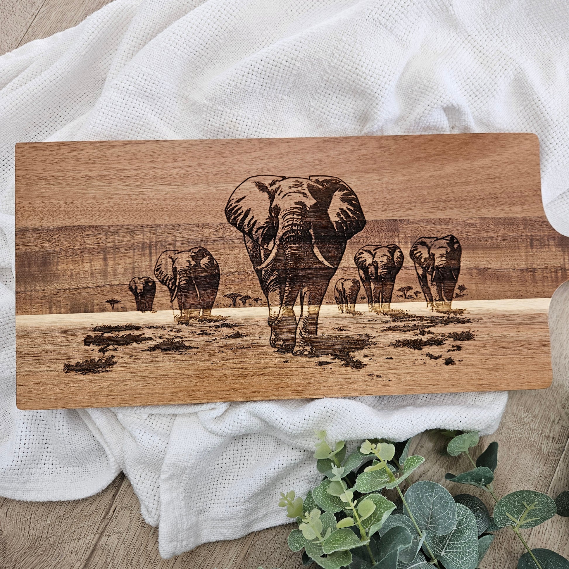 Perfect for entertaining or everyday use, this versatile board doubles as a cheese platter, grazing board, or kitchen chopping board. The beautiful elephant engraving makes it a standout piece on any table and a thoughtful gift for animal lovers, foodies, or anyone who appreciates handcrafted wooden homeware.