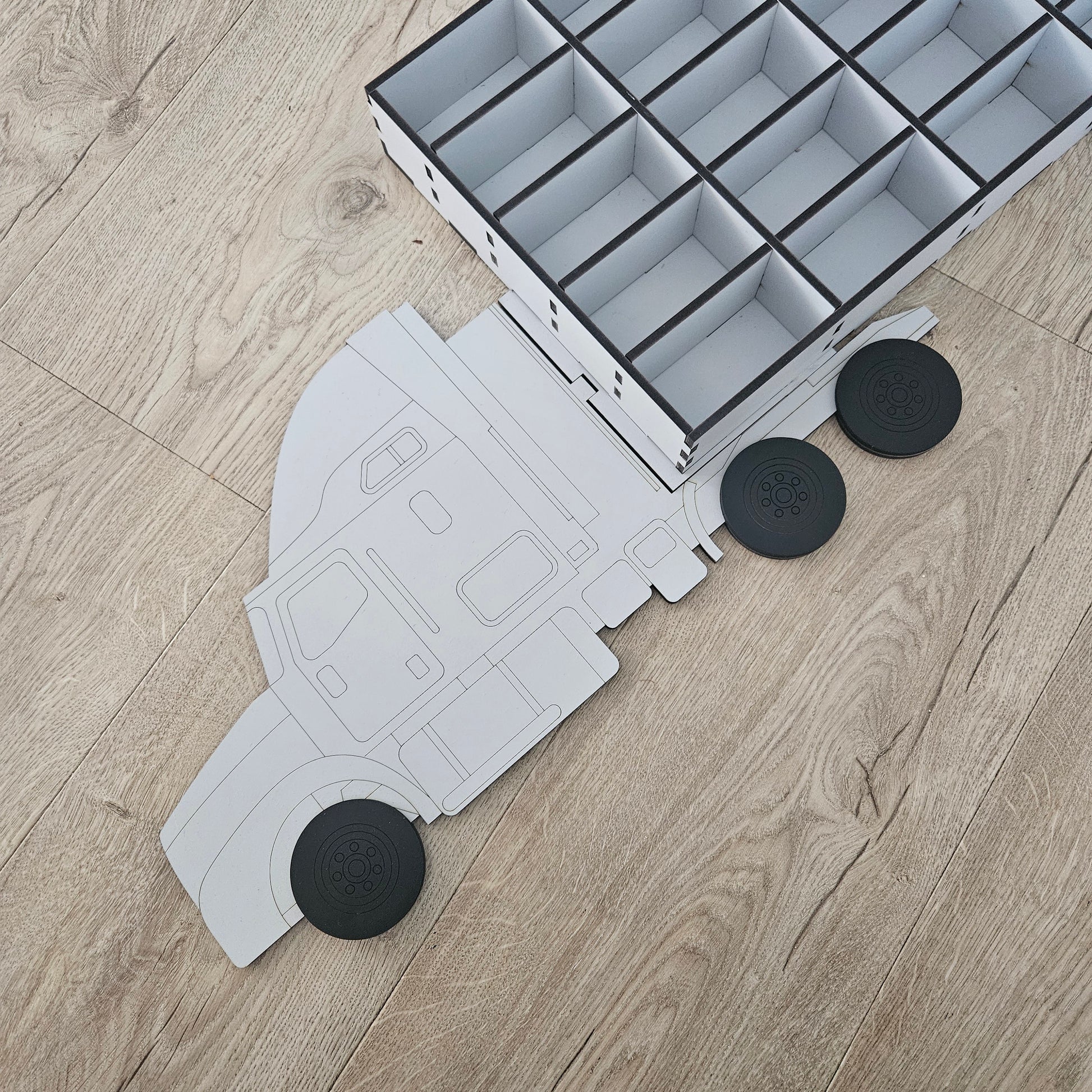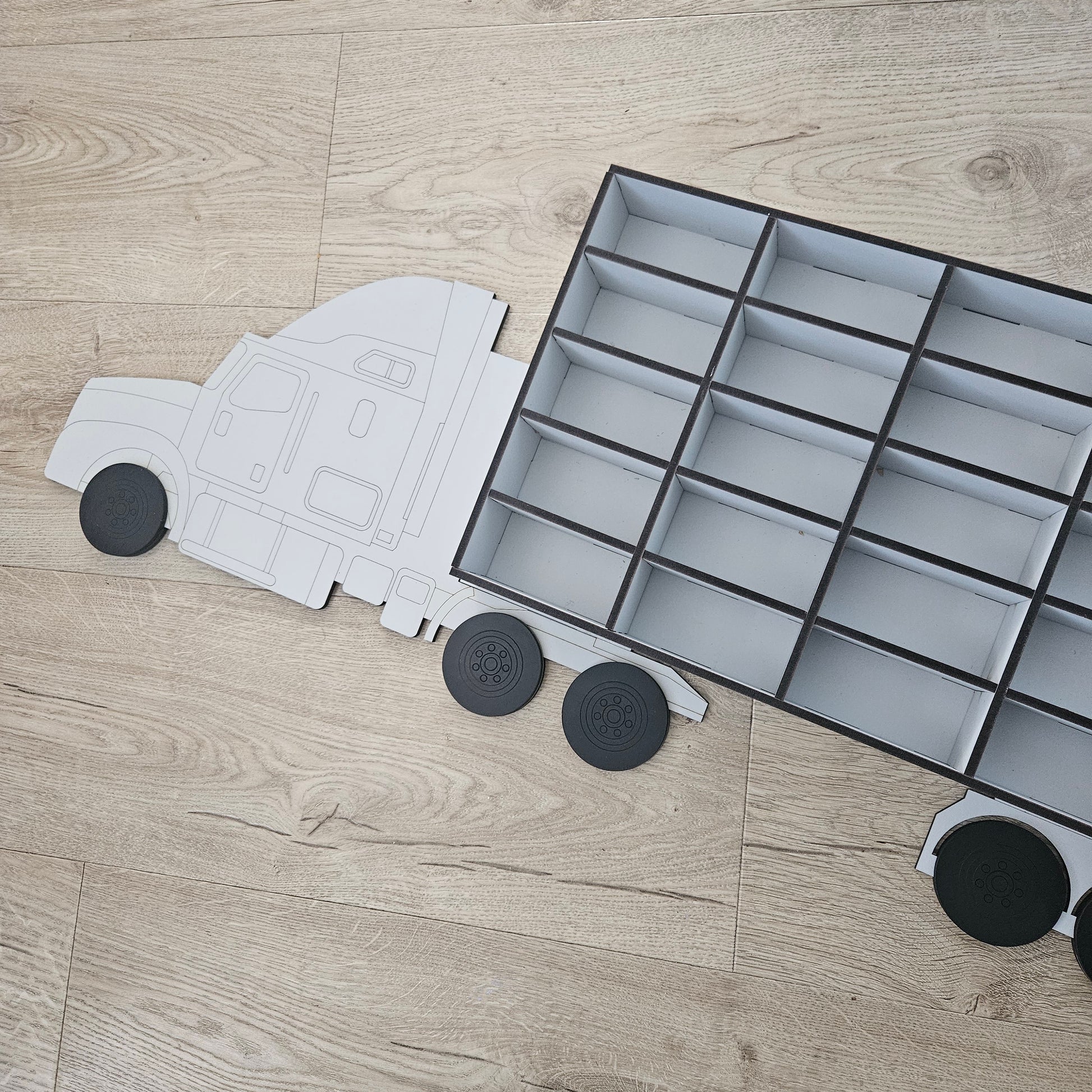 Rev up your little one's playroom or your own collector’s corner with this eye-catching Matchbox Car Holder shaped like a classic truck! Precision cut from high-grade engineered wood composite and painted in your cjoice of colour this cleverly designed display unit holds up to 25 toy cars, each in its own individual compartment.