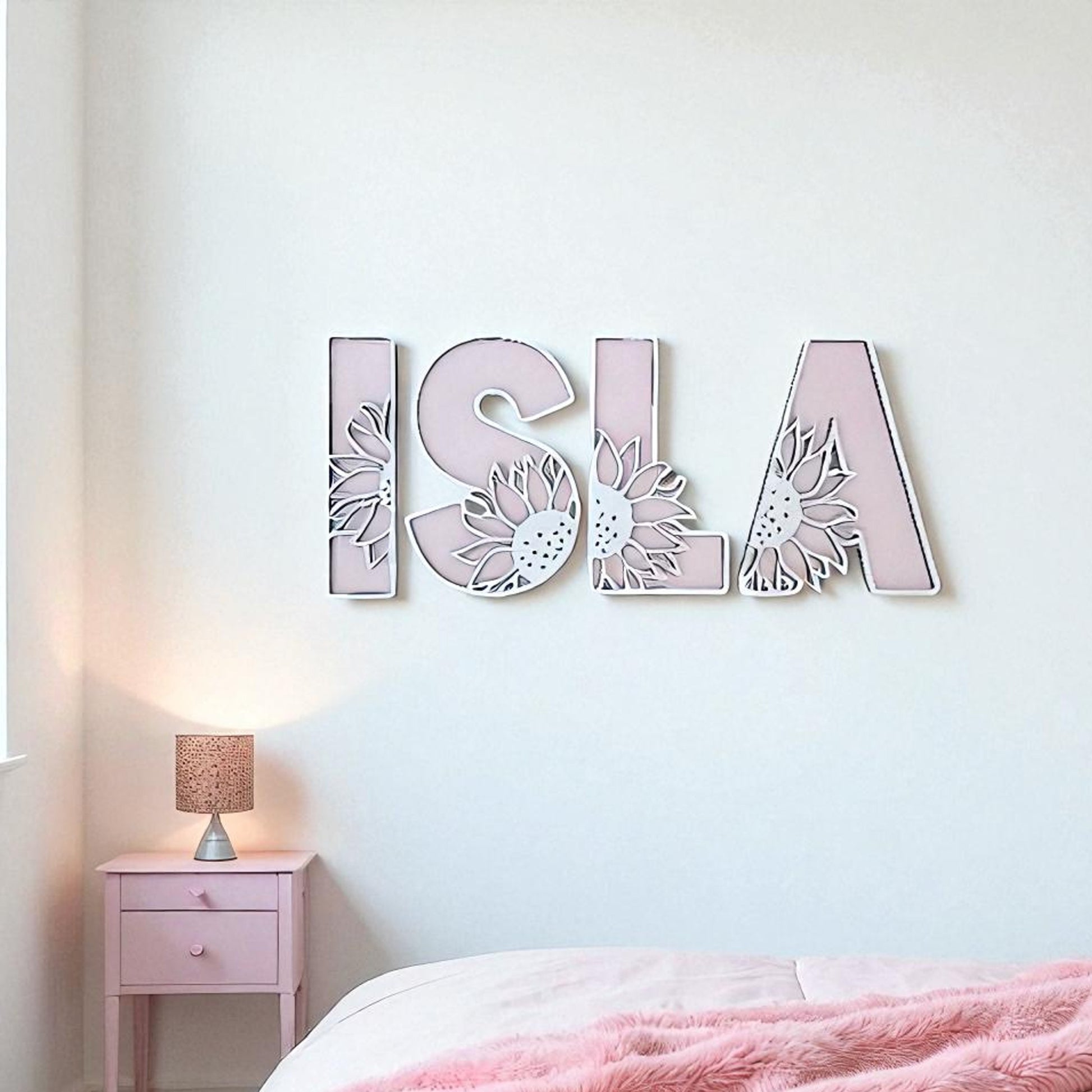 Personalised Two-Layered Sunflower Letters – Custom Floral Name Signs for Home or Nursery Decor